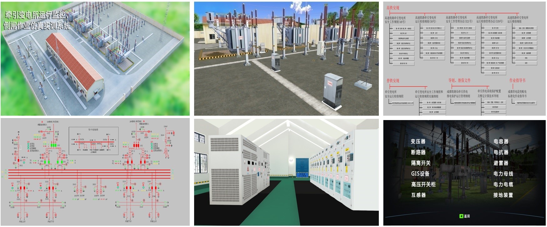 以鐵路變配電所、分區所為模型進行全三維仿真的基礎上,增加滴流磴變配電所典型配電設備,建立一套全方位、全過程、全場景的高逼真度、交互式變配電所仿真培訓模擬系統,以滿足變配電所運維人員的運行、檢修維護、安全管理等方面技能、技術培訓的需求。例如巡視(變配電一體巡視)、倒閘(變配電一體倒閘,例如110/10kV動力變系統停電)、檢修試驗、故障模擬等,均將變電與配電視為一個整體進行仿真,完全還原公司管內普鐵變配電所真實運行情況。