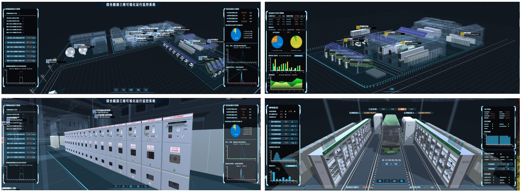 采用三維虛擬仿真技術、虛擬互動技術、三維建模技術、實時數(shù)據(jù)采集技術、可組態(tài)圖表技術等,基于大屏幕互動顯示技術,對電網(wǎng)內(nèi)的多種能源形式、電網(wǎng)設備等進行詳細業(yè)務分析,并將新技術、新設備的優(yōu)異性能數(shù)據(jù)等在三維可視化系統(tǒng)中突出展現(xiàn)。全方位展示能源、電網(wǎng)、負荷之間的關系。系統(tǒng)的三維場景和操作界面設計以絕佳視覺展現(xiàn)效果為目標,依托大屏幕顯示技術,身臨其境的三維可視化展示與智能巡視等操作體驗。